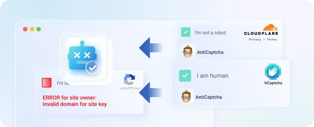 No need to rebuild your automations. You just route CAPTCHA challenges through AntiCaptcha.